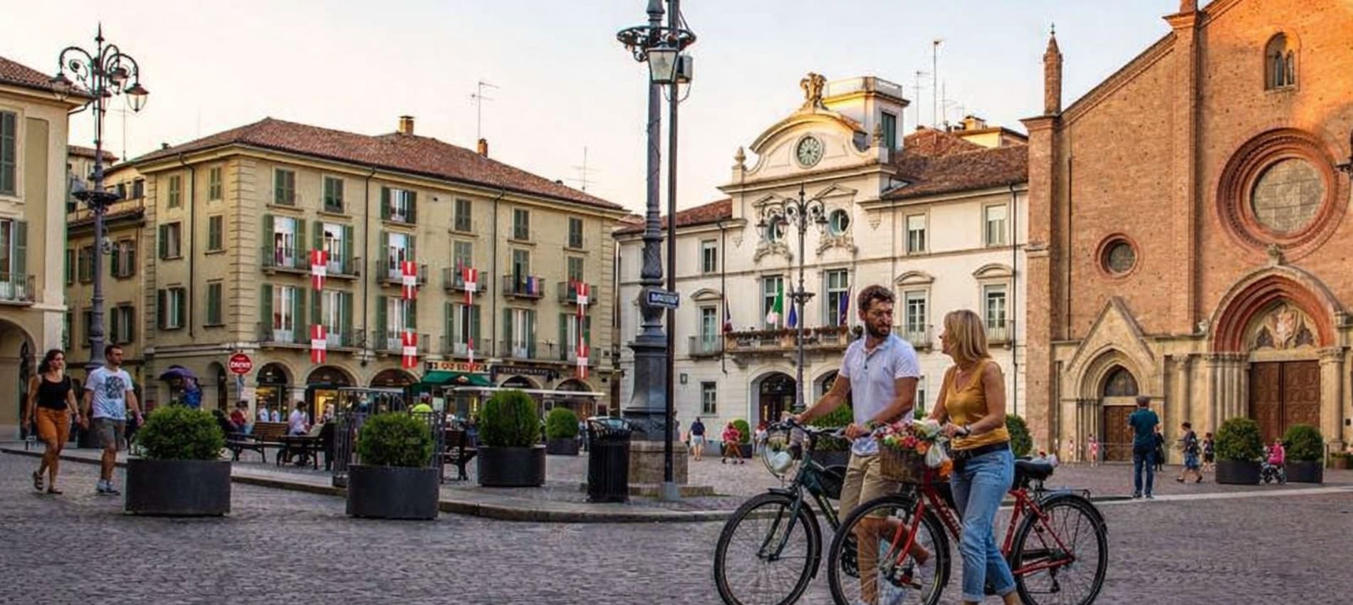 Cada vez más viñedos bordean la ruta. Pedalearemos junto a pequeños pueblos de montaña y el Piamonte nos ofrecerá vistas impresionantes. Pasaremos la noche en Asti, una ciudad rebosante de cultura. No solo es famosa por su vino espumoso homónimo, sino también por su renombrado Palio, una carrera de caballos donde cada municipio compite por la supremacía del año siguiente.
